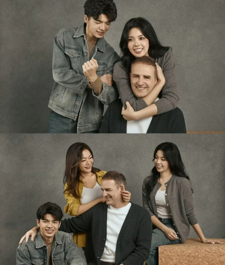 一家四口的合照看起来也是幸福感满满